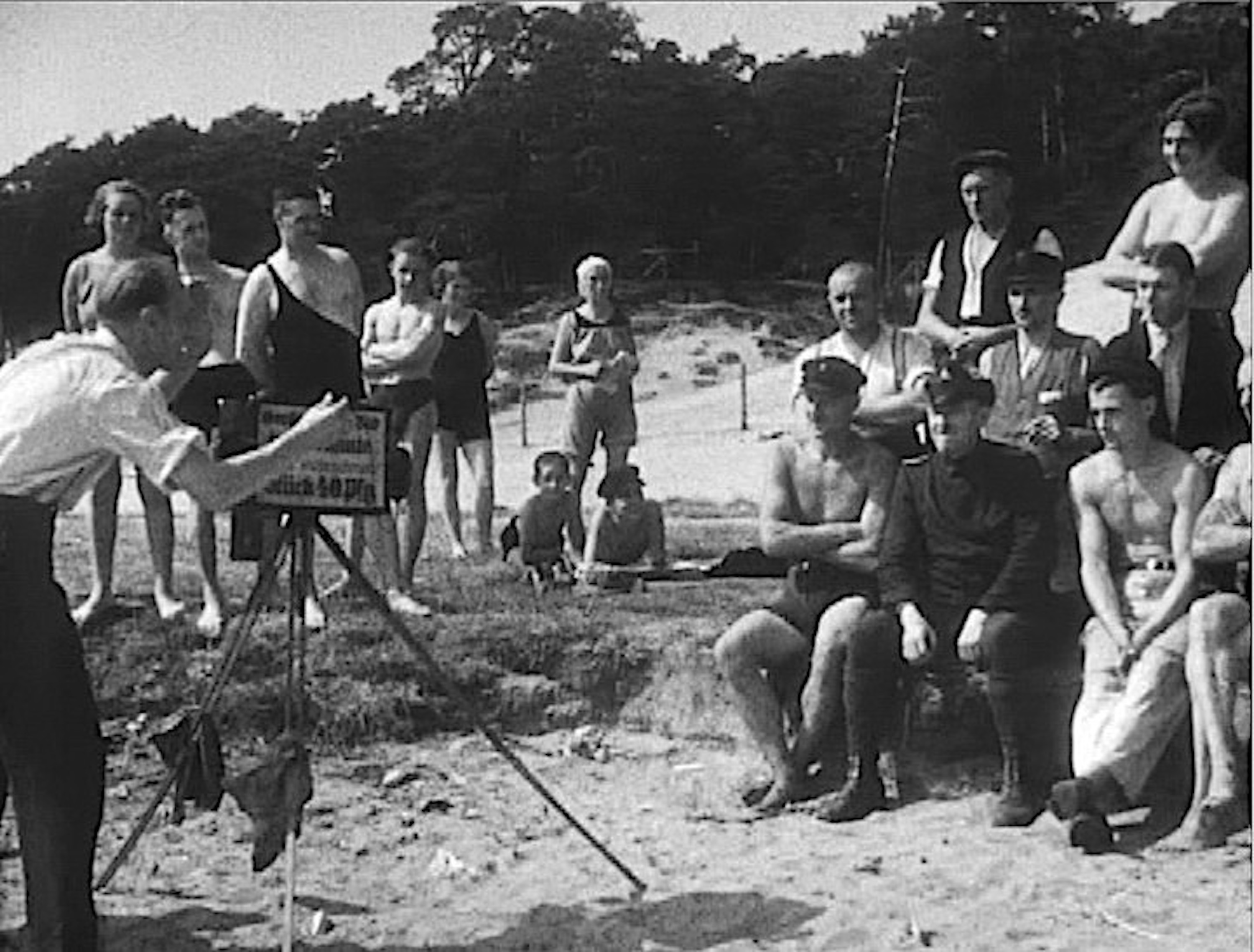 Robert Siodmak and Edgar G. Ulmer (directors) 1930 A photographer taking photographs on a beach (Film still from Robert Siodmak and Edgar G. Ulmer "People On Sunday", 44:14)