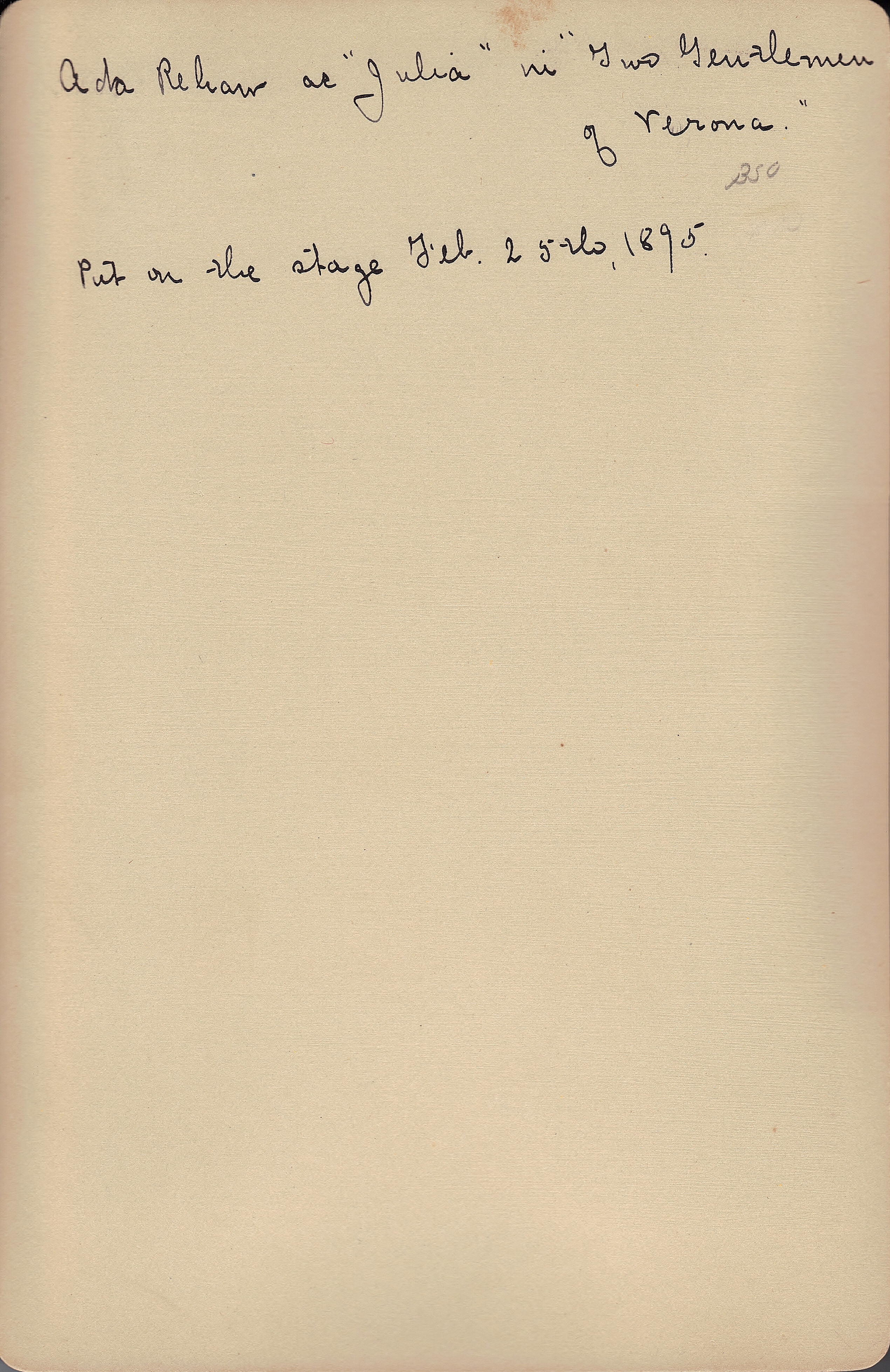 Handwritten in ink on the back "Put on the stage Feb. 25th, 1895."