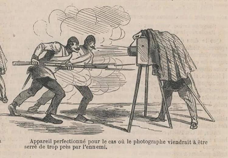 Modified camera in case the photographer finds himself too close to the enemy. L'Illustration, Journal Universel, 20 February 1861 LL/104438