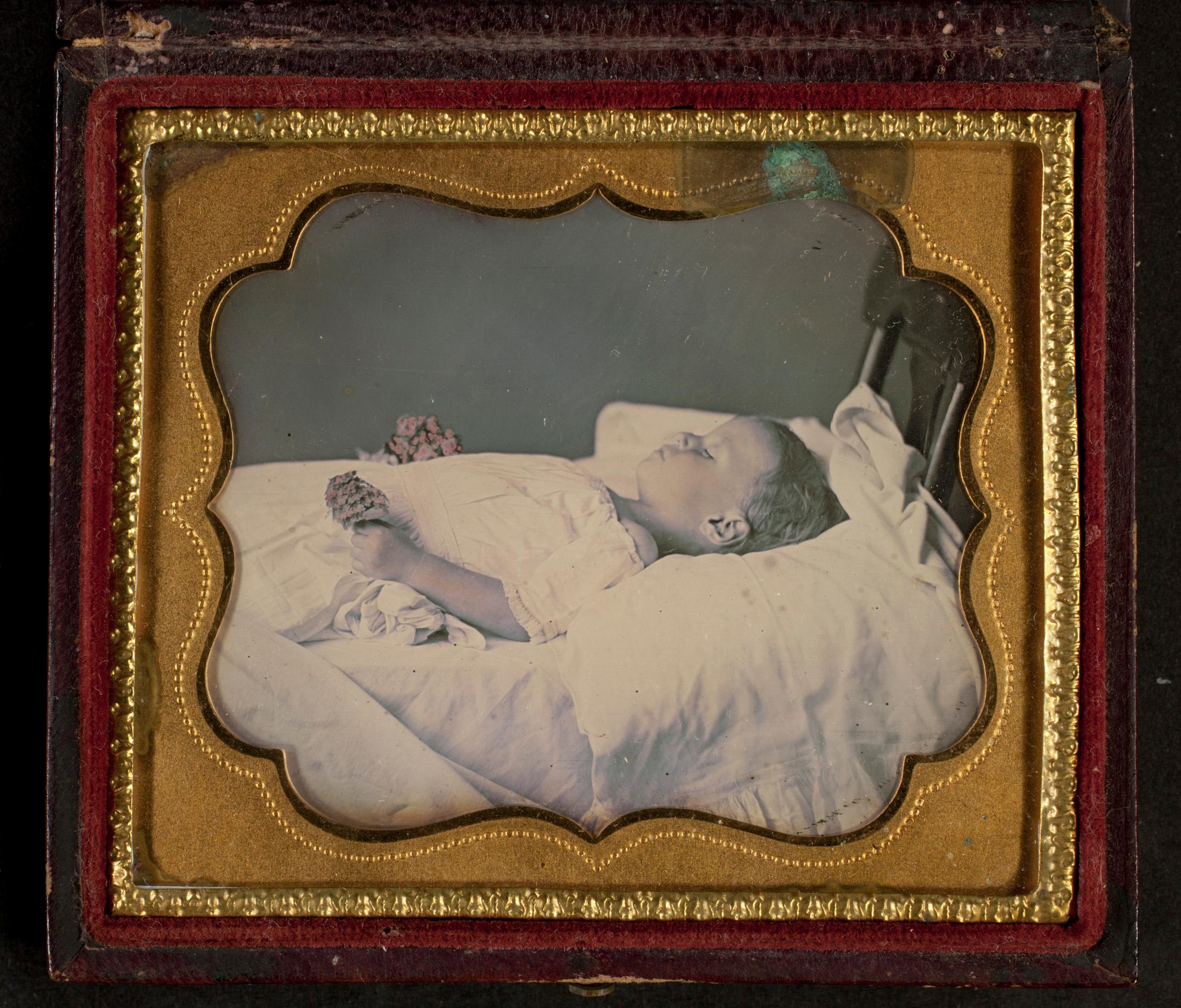 Child laid out with violets