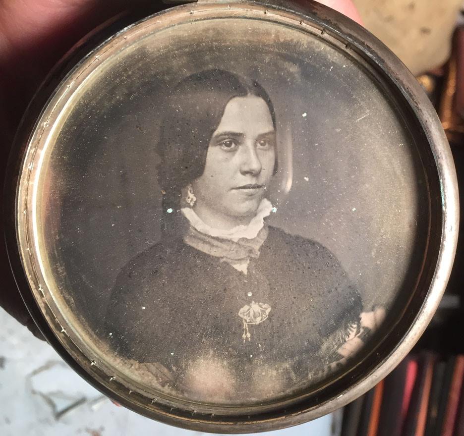 A German Beer Stein with daguerreotype portrait of a young woman