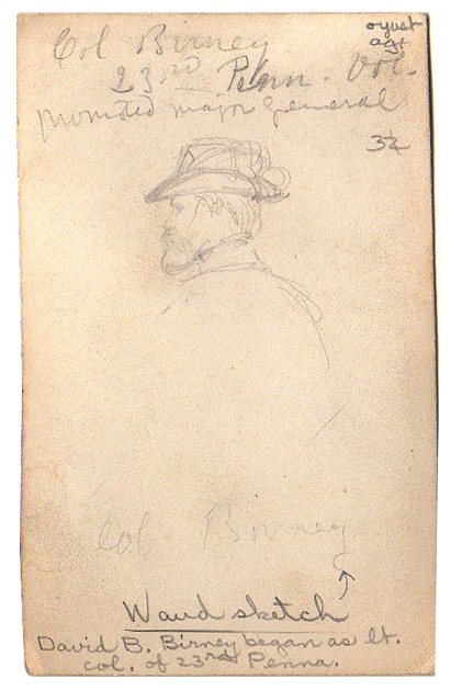 Carte de visite, back Private collection Alfred Rudolph Waud (1828-1891) sketch of Col. Birney. Waud was one of the most significant illustrators of the American Civil War.