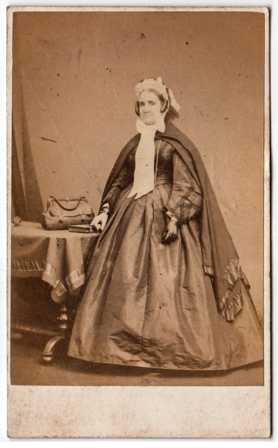 Possibly a female medical worker, doctor or midwife given the prominence given to her bag but this is speculation.