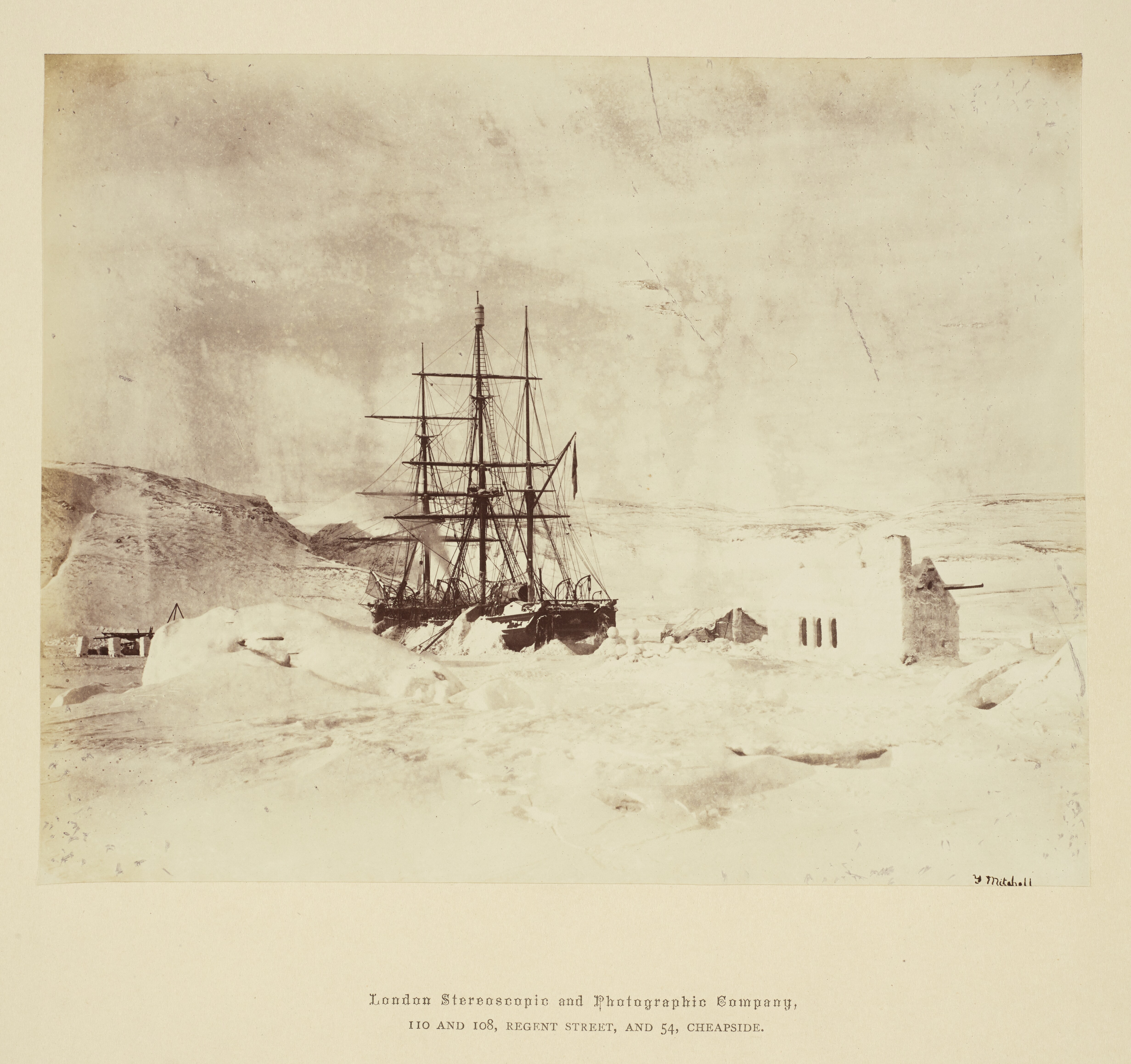 (Alan Griffiths, 27 January 2026) The photographer is not given on the Det Kongelige Bibliotek (The Royal Library) website but was, based on the The Royal Collection (UK), Thomas Mitchell. He was the photographer for the British Arctic Expedition, commanded by Captain George Nares (1875-1876). He trained at the Army School of Photography in Chatham and was on the "Discovery". The photographs were shown at the Photographic Society of Great Britain exhibition in 1877. The other photographer on this expedition was George White on "Alert".
