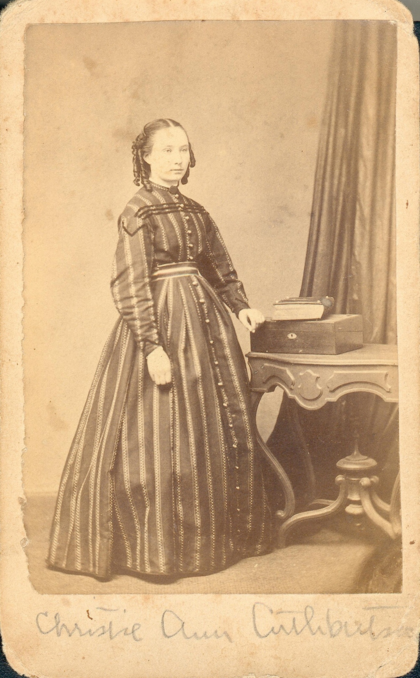 Christie Ann Cuthbertson [A photograph album rests on the table]