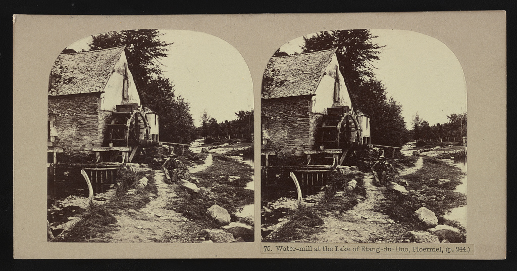 Henry Taylor 1858, 5 September (taken) 1859 (published) Water-mill at the Lake of Etang-du-Duc, Ploermel, (p. 244.) [Narrative of a Walking Tour in Brittany]