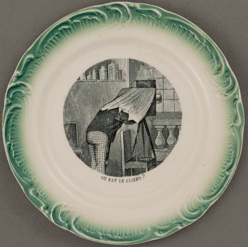 French design showing a photographer at work "Ou est le client?"