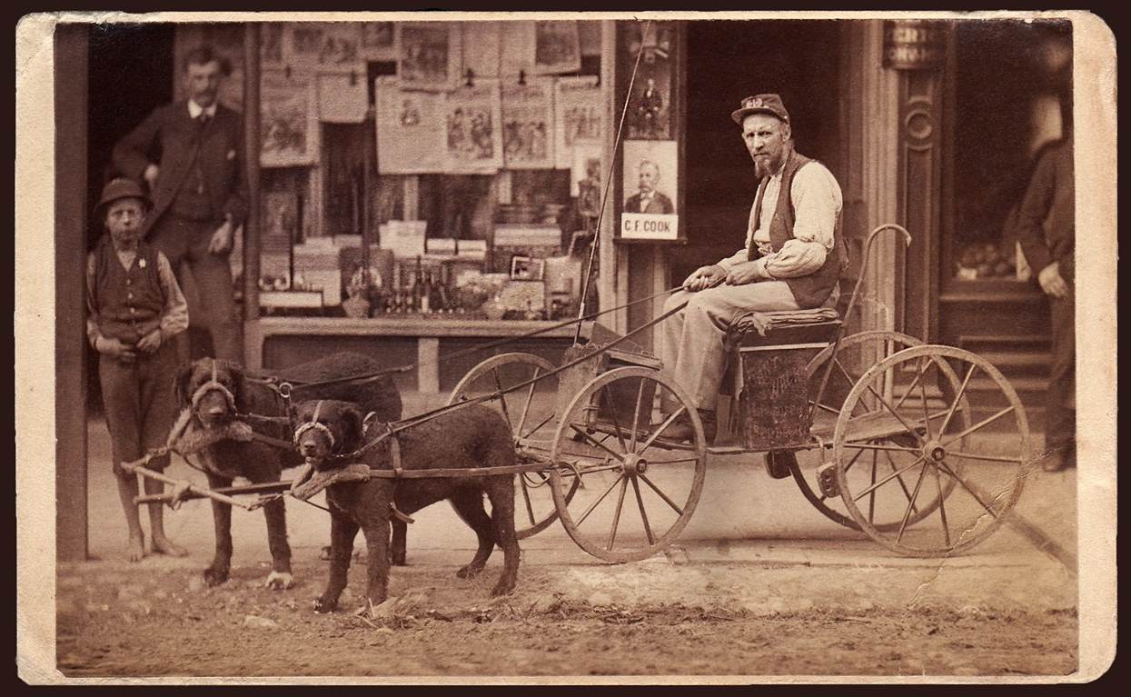 The photograph was taken in front of the photographic studio of C.F. Cook and a sign for him is visible.