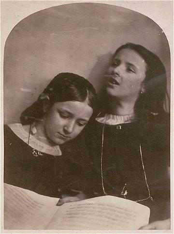 Two girls with sheet of music