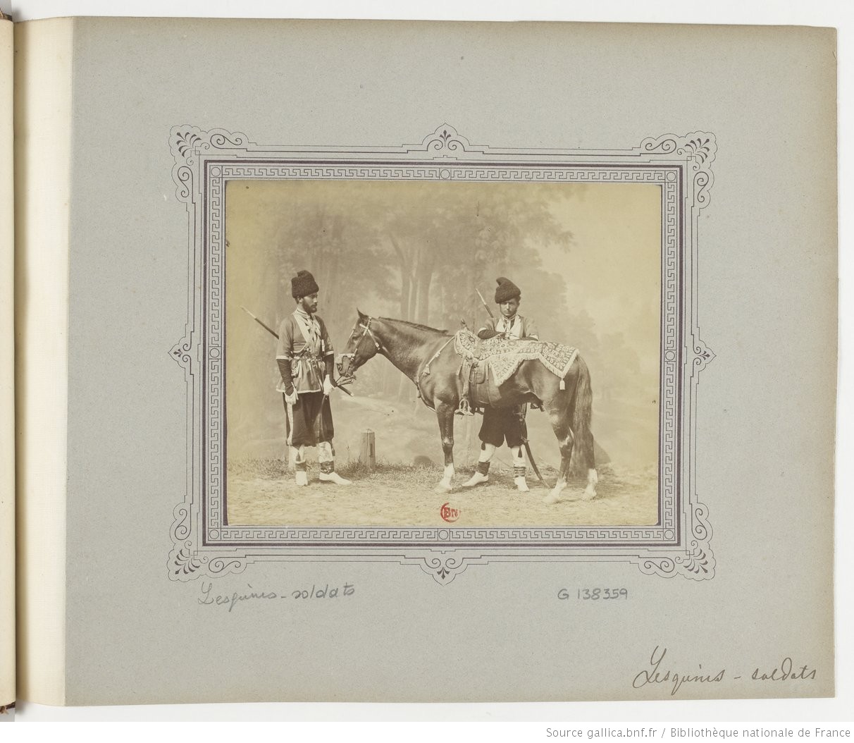 Untitled [Military portrait, Russian cavalry in front of a painted background]