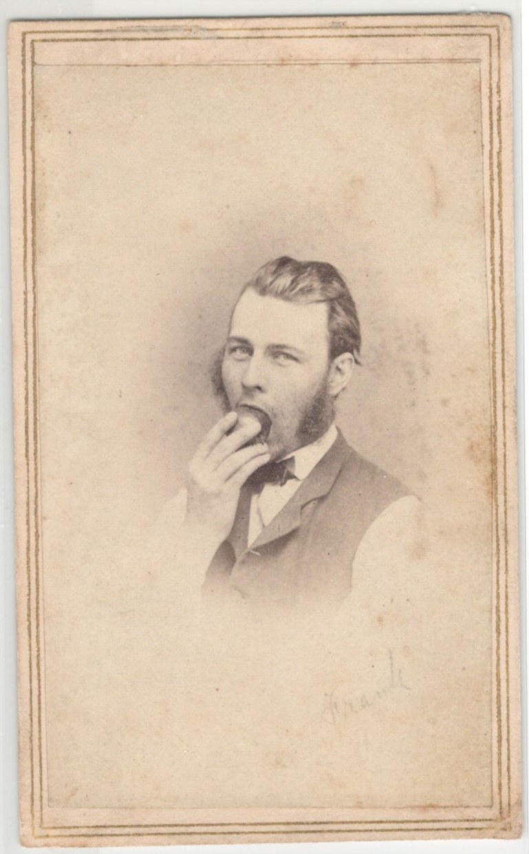 Frank [handwritten] eating an apple