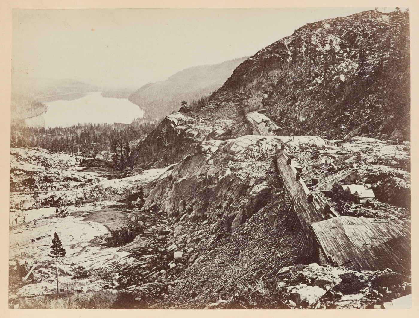 Summit of the Sierra Nevada, Snow Sheds in the Foreground, Donner Lake in the Distance, C.P.R.R.