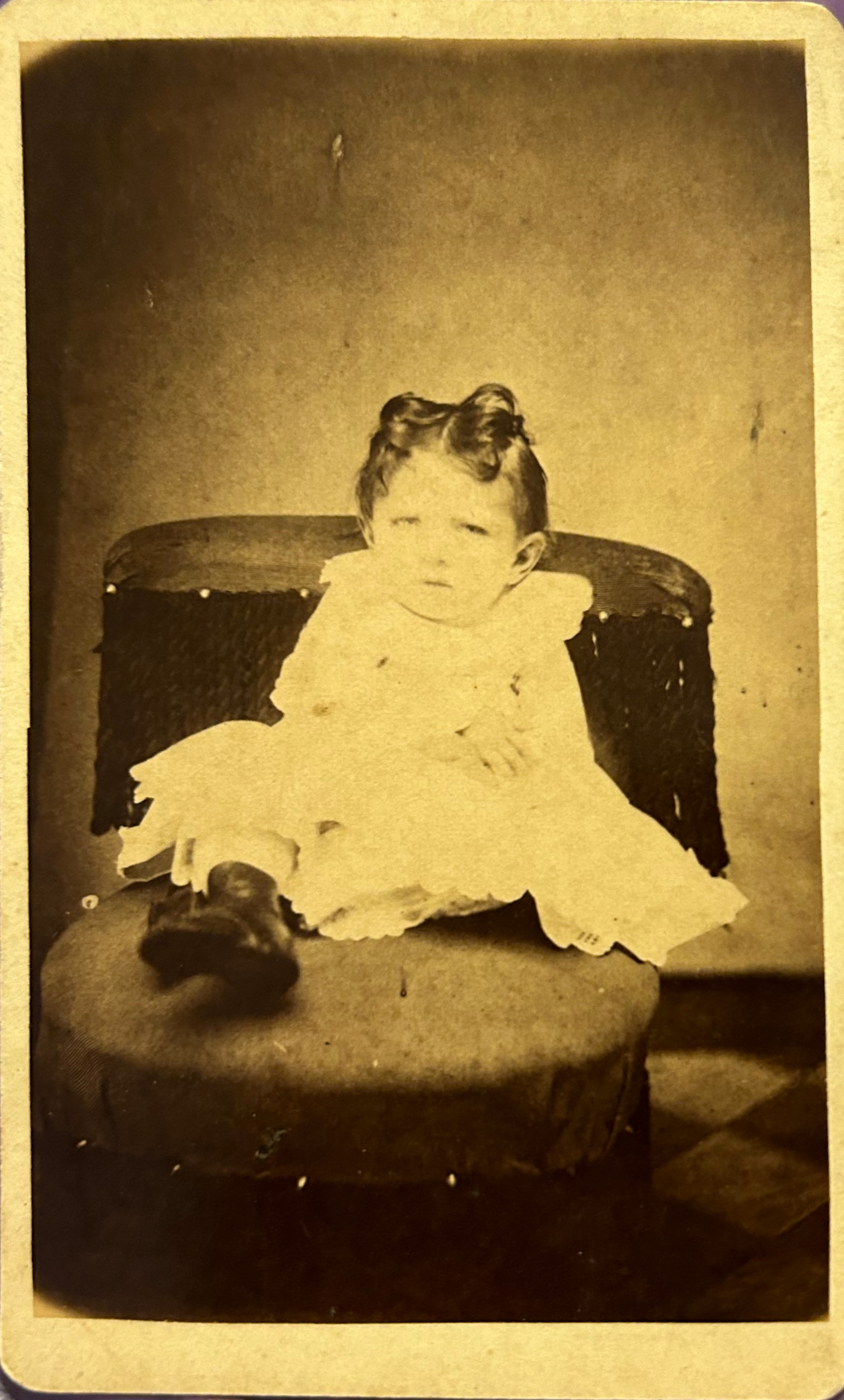 Young child posing on a studio chair