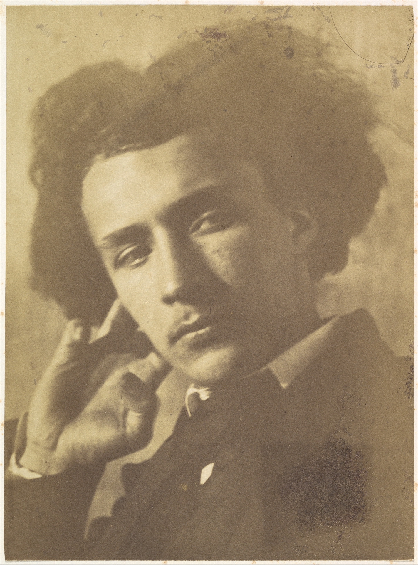 In the 1850s Marville made a series of portraits of Charles Delahaye, his assistant and possibly distant cousin. Twenty-four years Marville's junior, the young Delahaye appears here as a moody, sensuous figure. Although the print is technically imperfect—the right corner suggests an awkward attempt to correct a flaw in the negative—the closely cropped composition creates a striking immediacy that is unusual in photographs of the period.