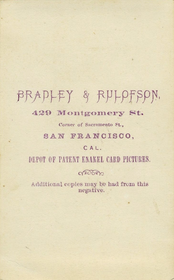 Backmark for "Bradley & Rulofson, 429 Montgomery St. Corner of Sacramento St., San Francisco, CAL."