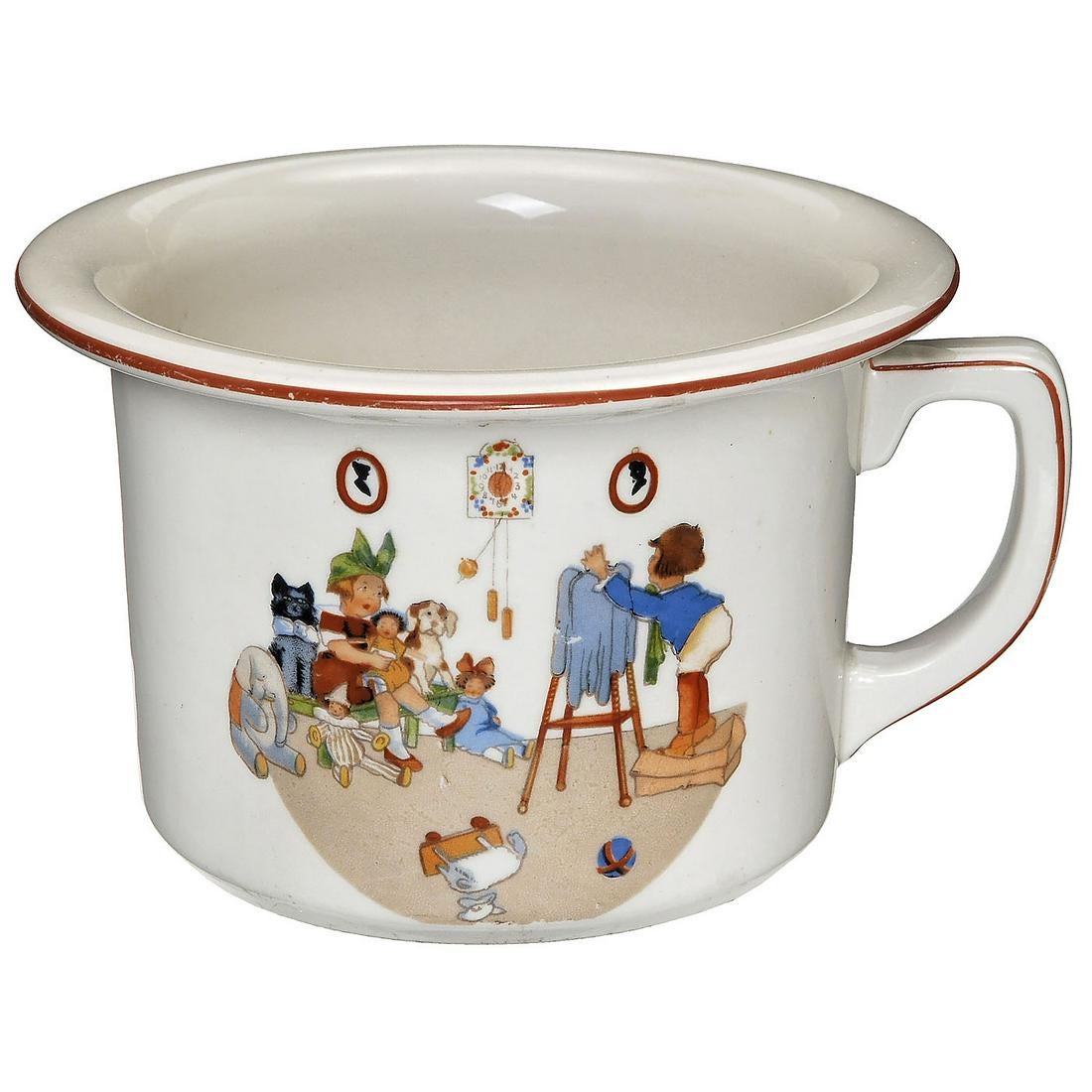 France. Pottery, 5 x 7 in., decorated with motifs of children photographing each other. Perhaps useful for a photographer to amuse his overexcited young subjects and make them smile! From the property of Antoine-Julien Alizard