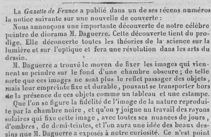 1839, 13 January Announcement in the Journal de La Haye (The Netherlands) of the invention of photography