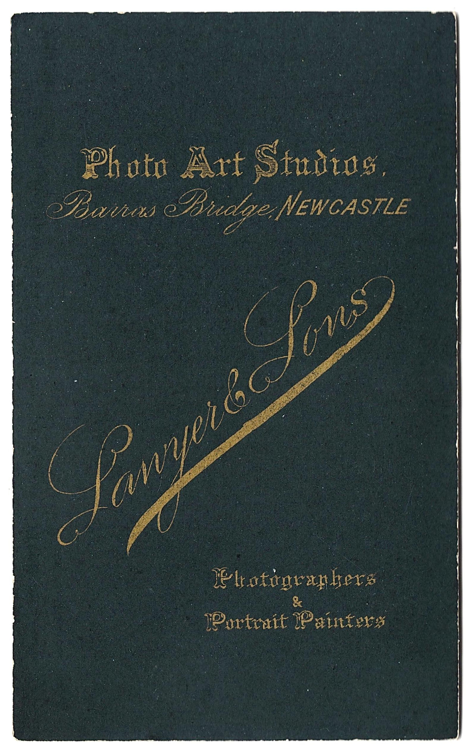 Backmark for "Sawyer & Sons, Photo Art Studios, Barras Bridge, Newcastle"