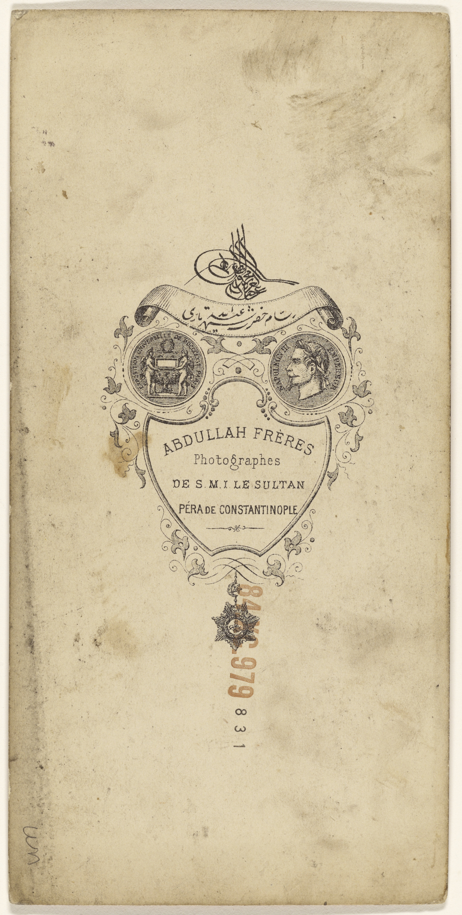 Backmark for "Abdullah frères, Photographes, de S.M.I. Le Sultan, Pera de Constantinople"