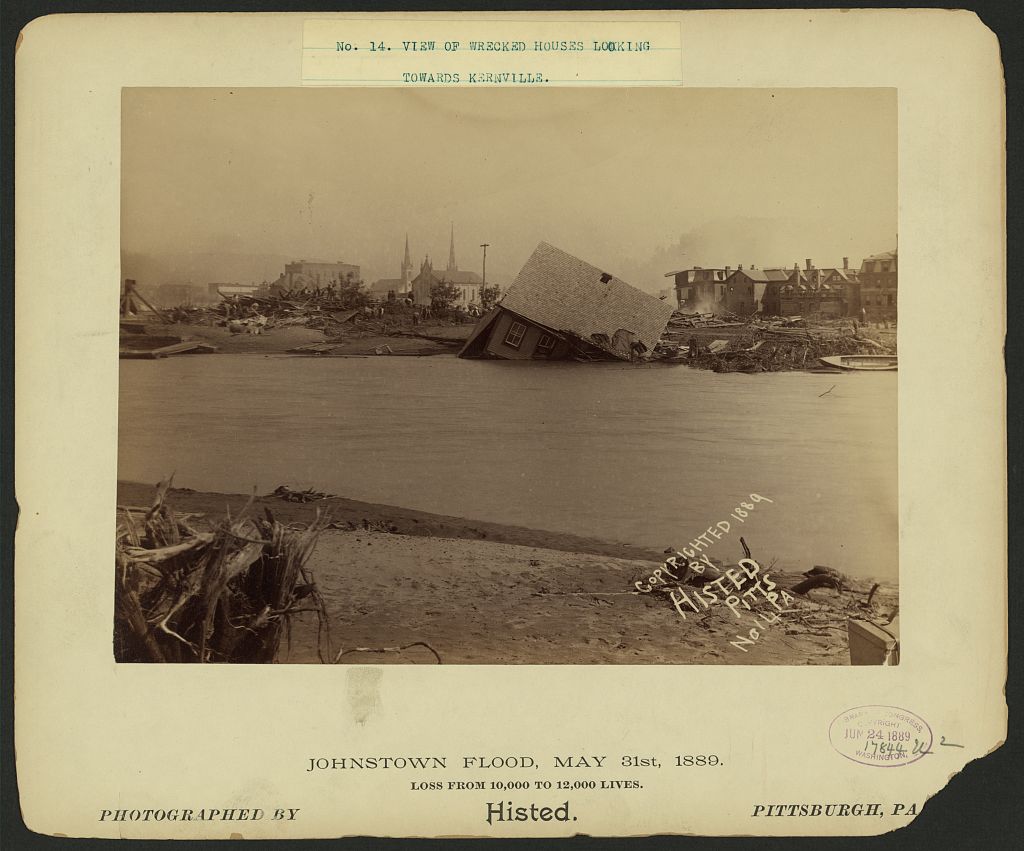 Ernest Walter Histed (1862-1947, Pittsburgh, PA.) 1899 (ca) View of wrecked houses, looking towards Kernville, Johnstown Flood, May 31st, 1889 [Johnstown Flood, May 31st, 1990.]