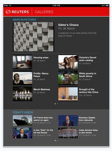 Version 1.0.1 of the Reuters Galleries app was released on 13 April 2010.
