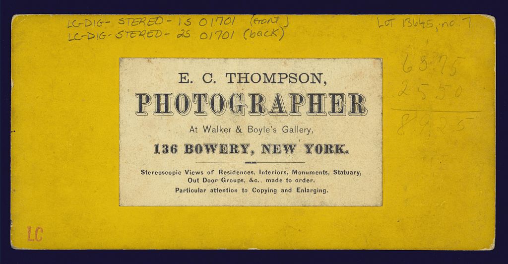 Stereoview, back Library of Congress, Prints and Photographs Division Reproduction Number: LC-DIG-stereo-1s01701 (digital file from original photograph, front) LC-DIG-stereo-2s01701 (digital file from original stereograph, back)