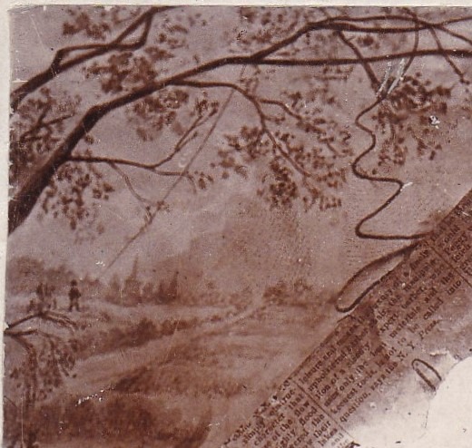 Detail from a portrait of a young man with a kite mask made from newspapers
