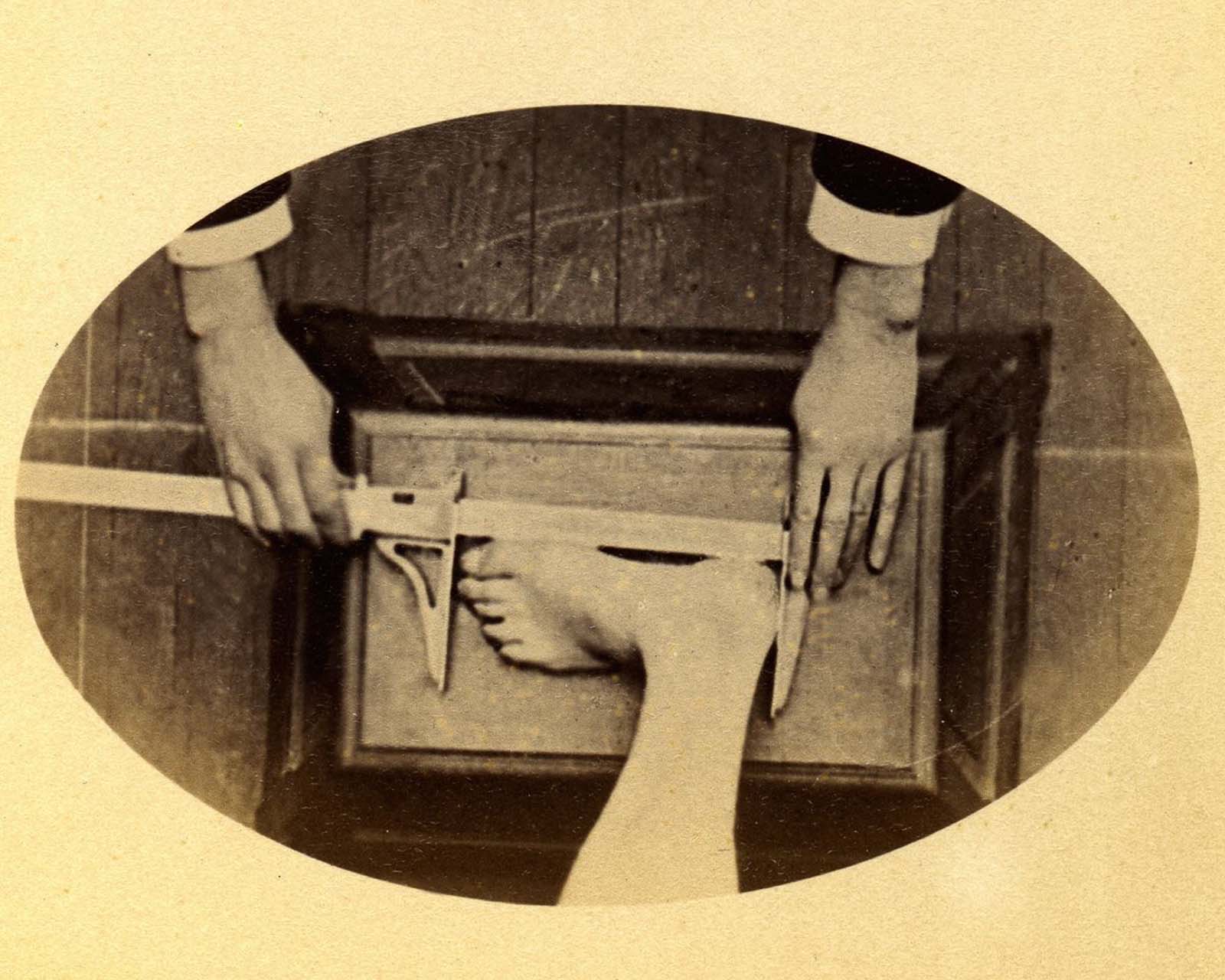 Anthropometric system of Alphonse Bertillon. Measurement of the foot. Paris (France)