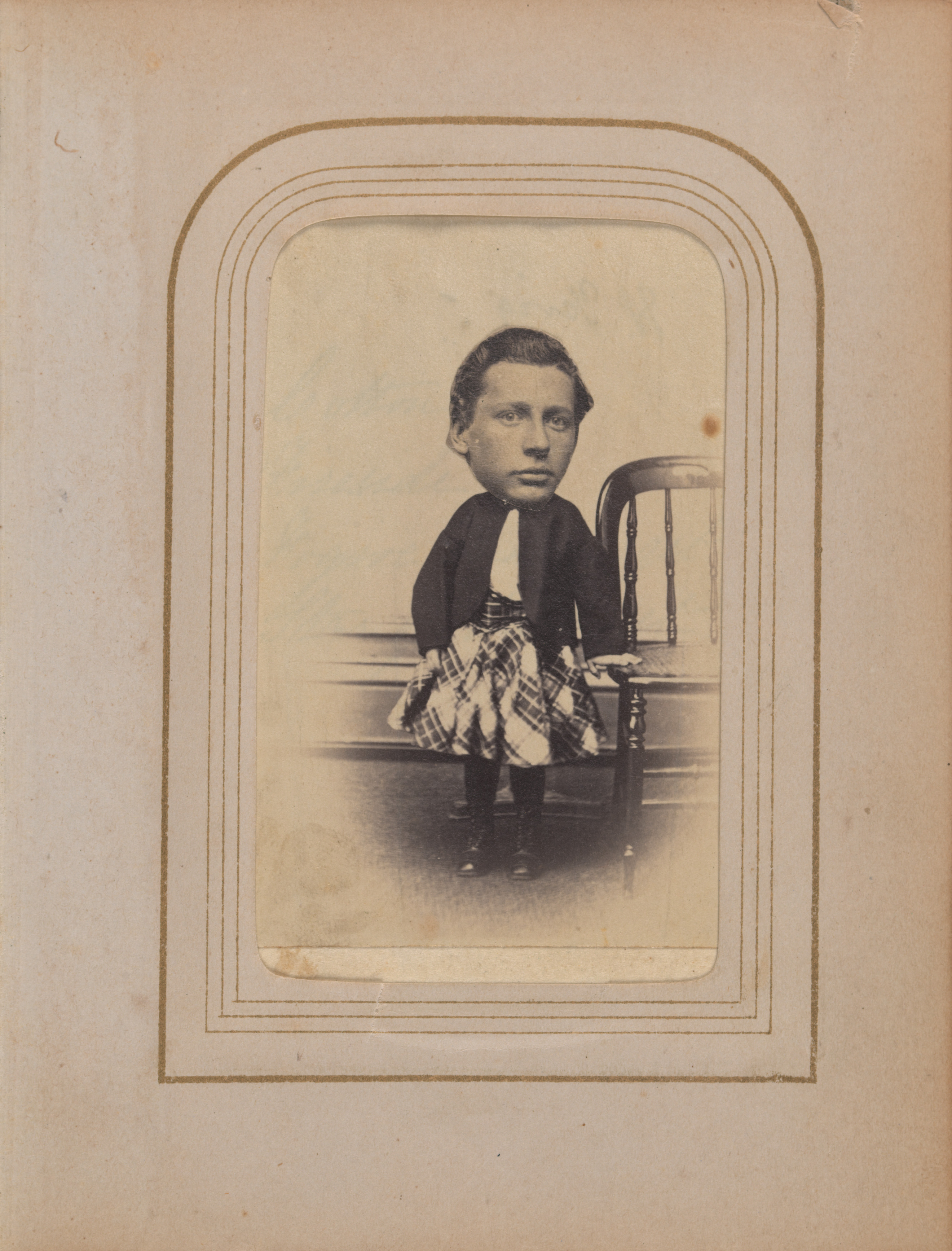Beginning in the late 1850s, cartes de visite, or small photographic portrait cards, were produced on a scale that put photography in the hands of the masses. Ahead of its time, this unusual collection of collages spoofs the rigidity of the format. The images play with scale and gender by juxtaposing cutout heads and mismatched sitters, thereby highlighting the difference between social identity—which was communicated in part through the exchange of calling cards—and individuality.