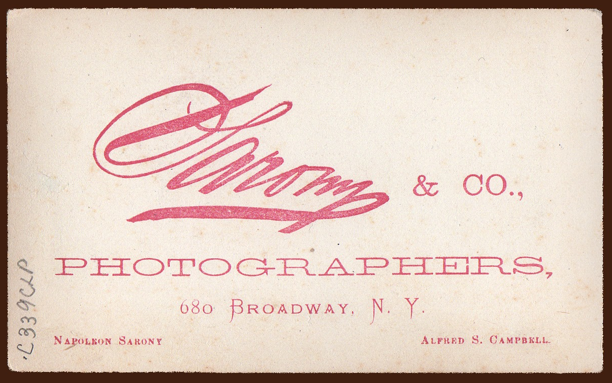 Backmark for "Sarony & Co., Photographers, 680 Broadway, N. Y."