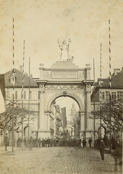 This image shows the Arch built for the victorious German troops in Frankfurt/M., returning from the French campaign. It was torn down shortly thereafter.