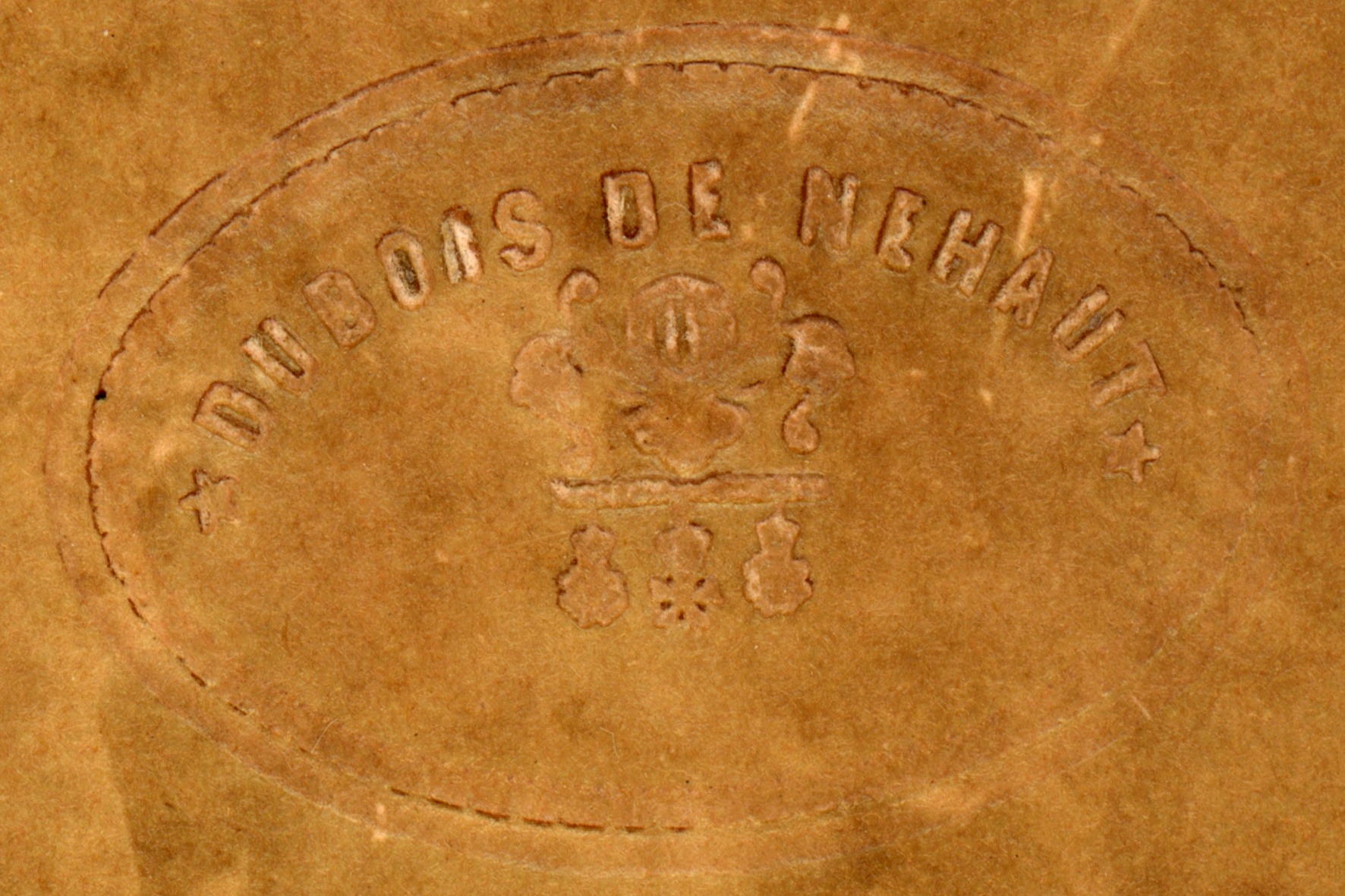 Embosssed stamp for "Dubois de Nehaut" on "Ceremony on July 21, 1856, to commemorate 30 years of reign of 'King Leopold I of Belgium', on the Place Royale in Brussels."