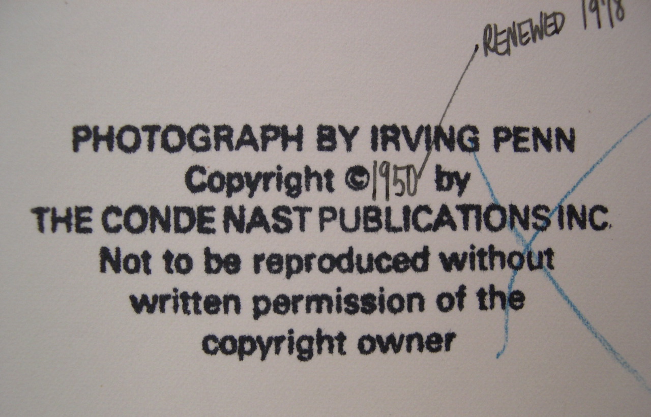 Studio stamp of Irving Penn