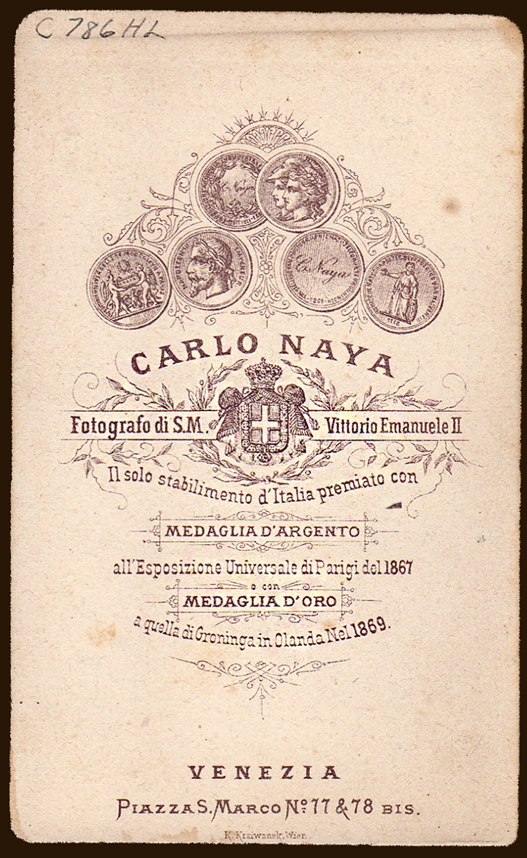 Backmark for "Carlo Naya, Venezia, Piazza No. 77 & 78 bis."