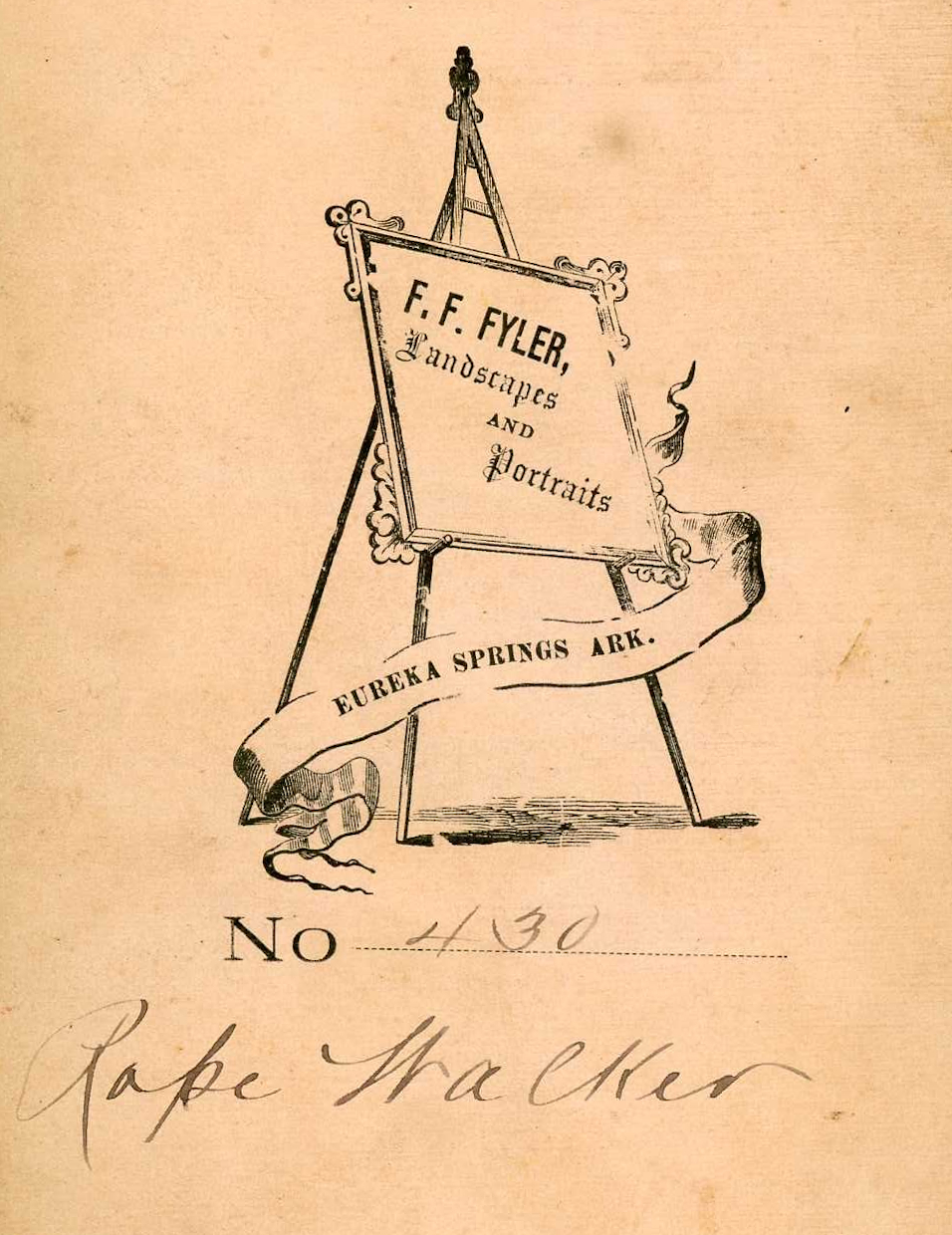 Backmark for "F.F. Fyler, Landscapes and Portraits, Eureka Springs, Ark."