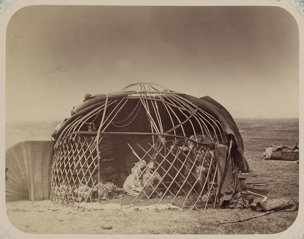 Syr Darya oblast. Interior of a Kyrgyz tent