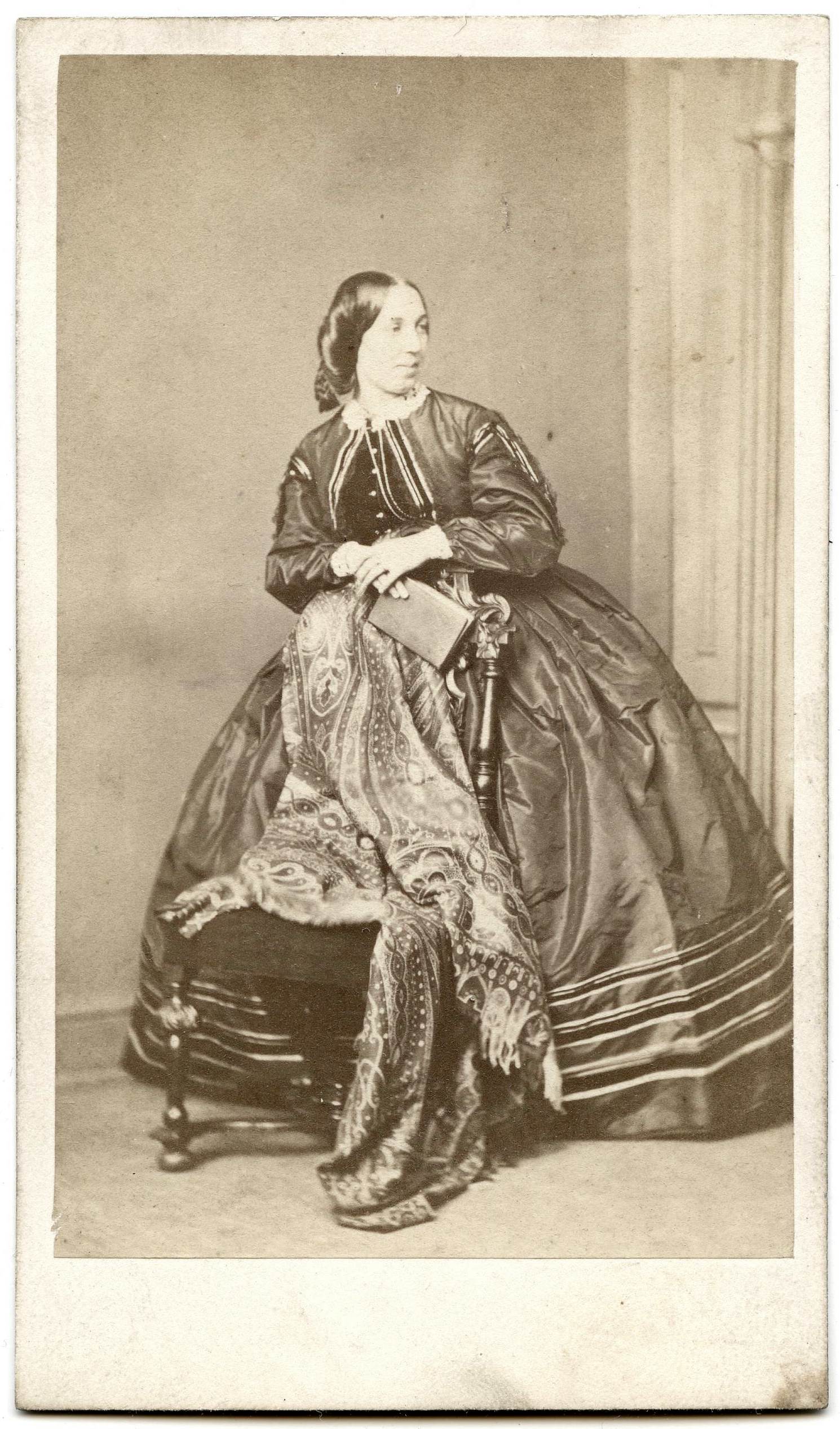 Studio portrait of a woman with a Paisley shawl