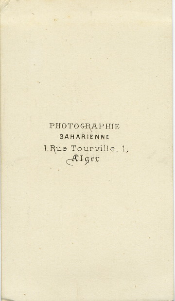 Back of carte de visite for the Photographie Saharienne studio, Alger [Algiers]