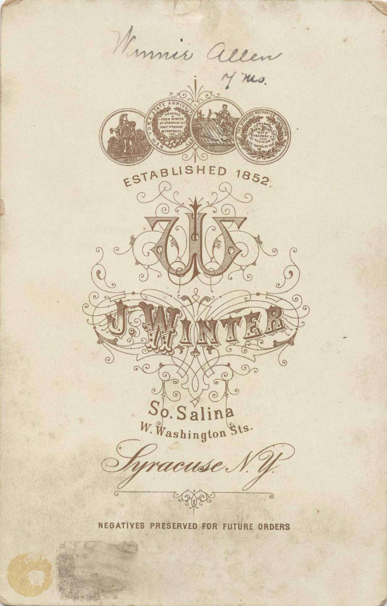 Backmark for "J. Winter, So. Salina, W. Washington Str., Syracuse, N.Y."