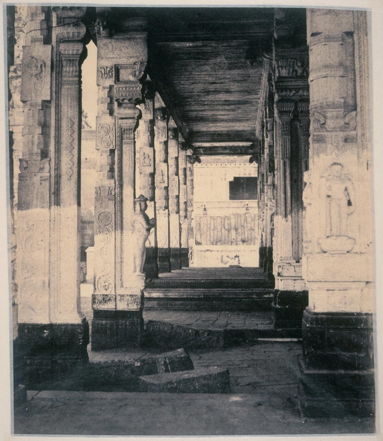 Linnaeus Tripe 1858, Jan/Mar (taken) , Aug - 1860 (print) Madura. The Great Pagoda, Interior View of Part of Muroothappa Sarvacar Munduppam [Photographic Views in Madura, Part III (1860)]
