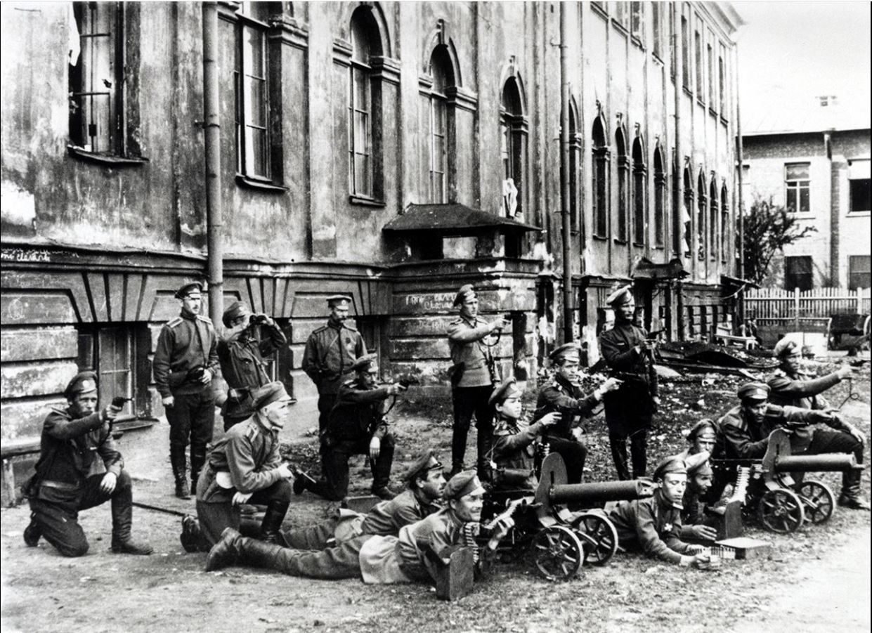 Soldiers prepare to shoot at demonstrators in Petrograd