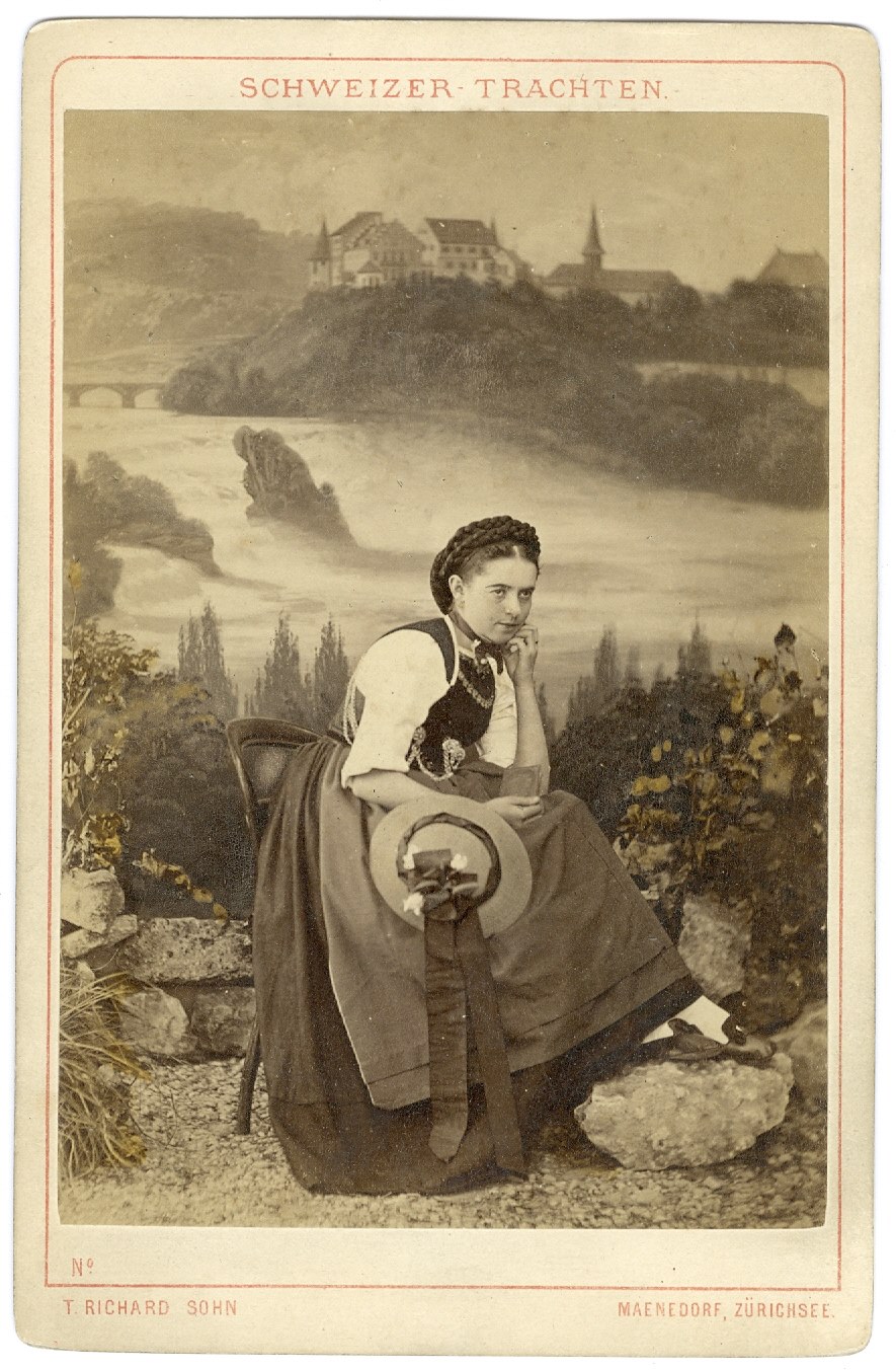 T. Richard Sohn 1880s (late) Schweizer Trachten [Swiss Costumes - Swiss woman in traditional clothing holding a 1/6th plate case]