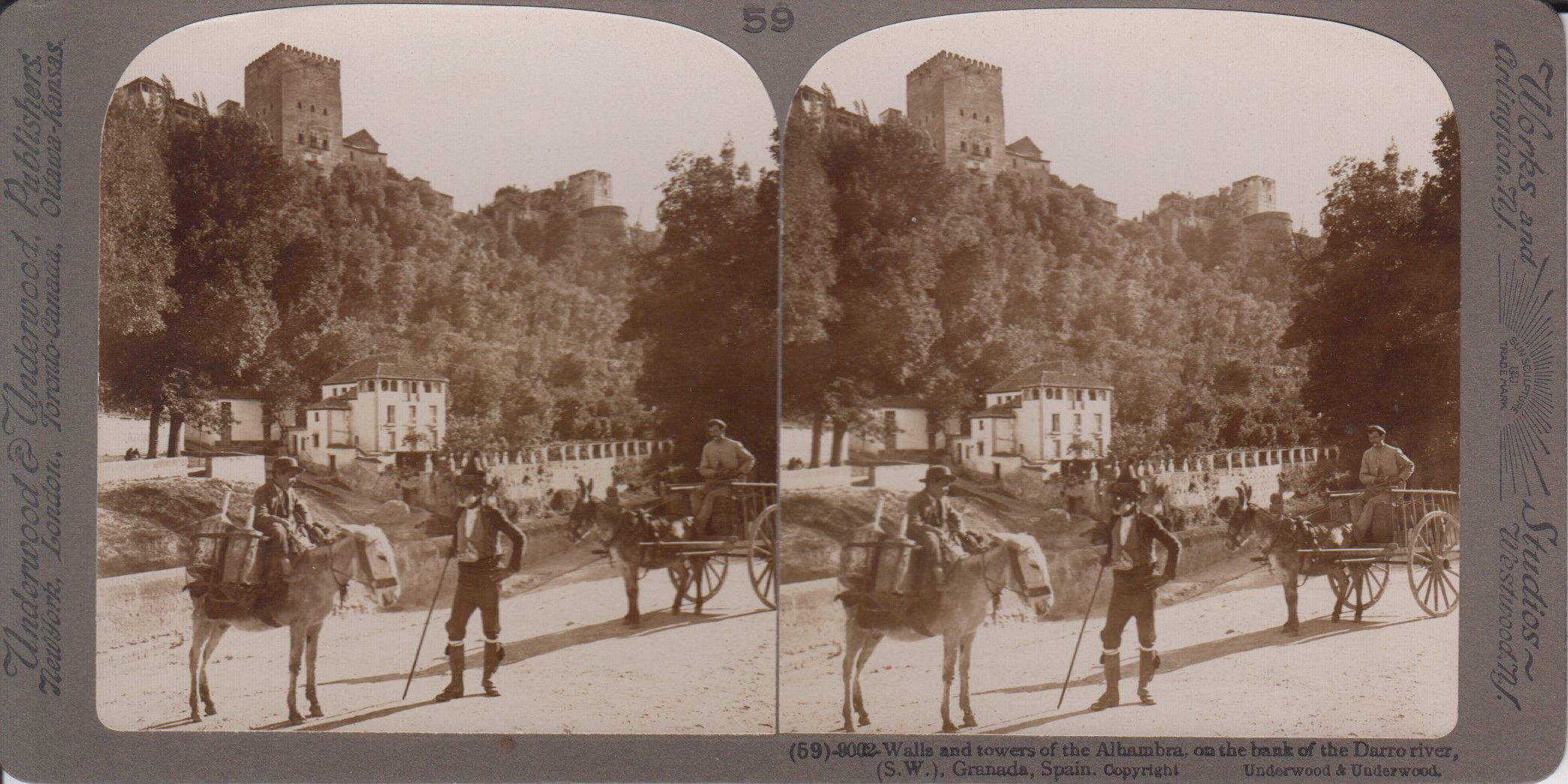 Walls and towers of the Alhambra, on the bank of the Darry river, (S.W.), Granada, Spain.
