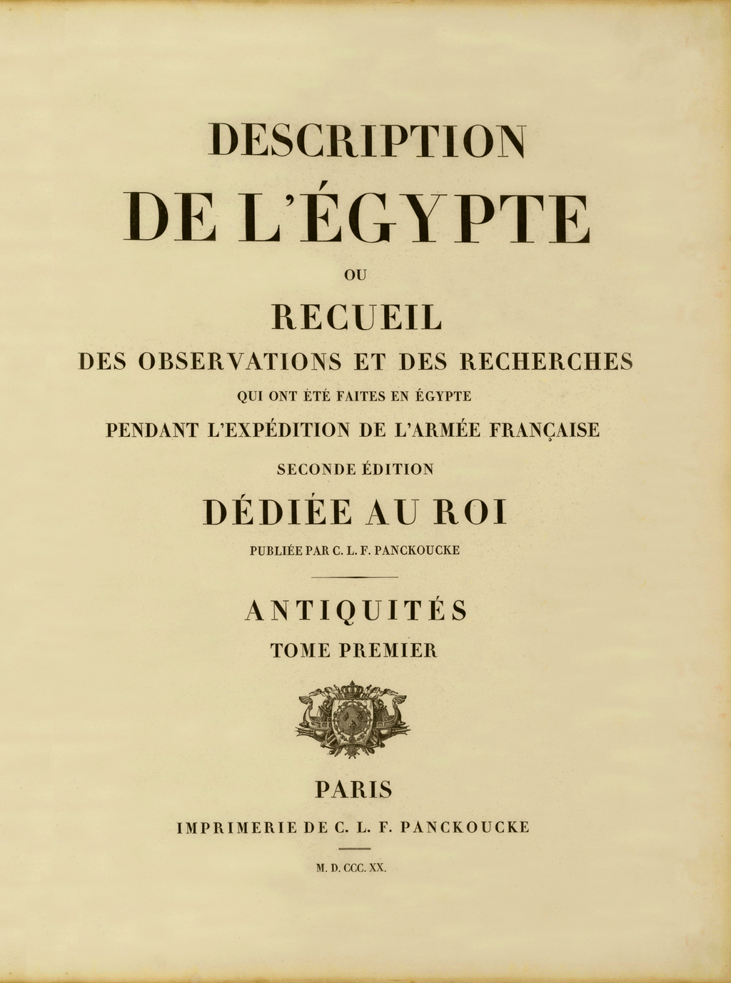 Title page Creative Commons - Wikipedia French Government Description de l'Egypte, ou Recueil des observations et des recherches qui ont été faites en Egypte pendant l'expédition de l'armée francaise, (1809-1829) [23 volumes published in the First edition - Imperial, 37 volumes in the Second edition - Panckoucke, 1821-1826]