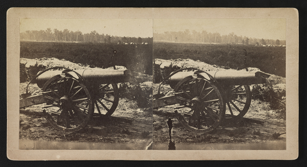 Photograph shows a disabled Confederate 24 pound gun, part of Duryea's and Bainbridge's Batteries, 15th Arkansas Confederate Infantry in Port Hudson after the siege in July 1863.