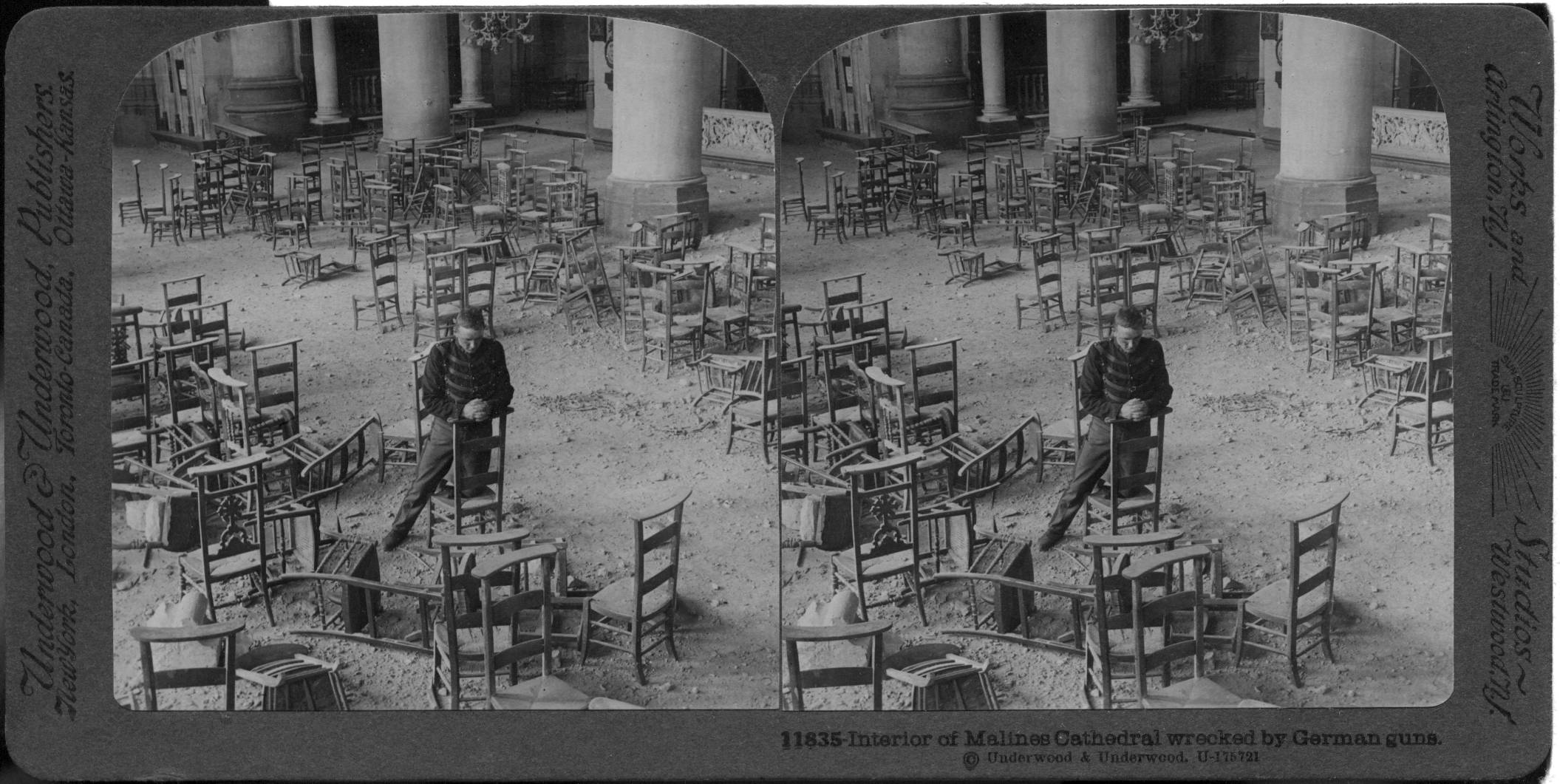 11835 - Interior of Malines Cathedral wrecked by German guns.