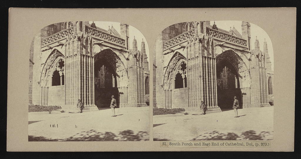 Henry Taylor 1858, 7 September (taken) 1859 (published) South porch and east end of cathedral, Dol, (p. 279.) [Narrative of a Walking Tour in Brittany]