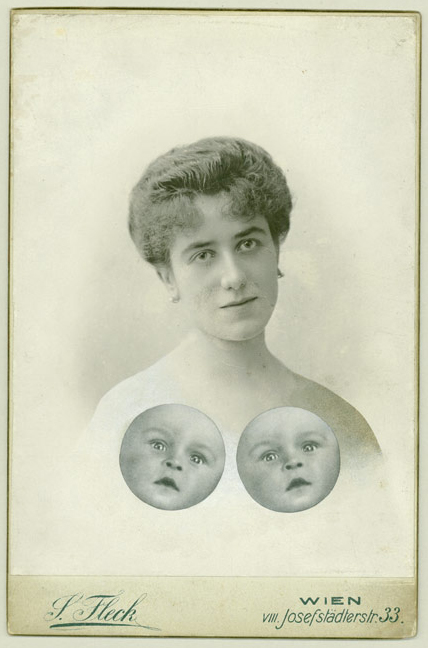 Rare and curious objects, these portrait photo collages were inspired by Dada and Surrealism. Stepan used decals, paper objects and string to add new meaning and humor to the rather conventional cabinet portraits of the late 19th century. These are prime examples of Stepan's surreal and fantasy-filled work.
