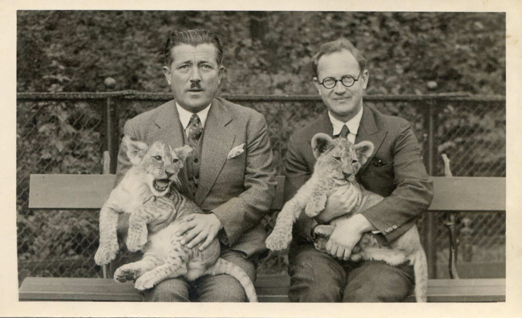 Men with lion cubs, Berlin zoo