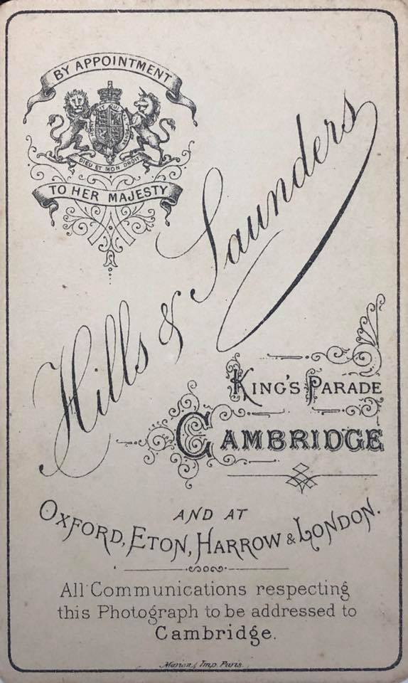 Backmark for "Hill & Saunders, King's Parade, Cambridge"